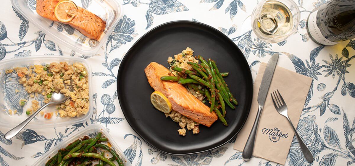 If you're planning to entertain at home this year, the Market has you covered! With homemade dishes including traditional stuffing, candied sweet potatoes, haricots verts and baby carrots, three-cheese mac and cheese, roasted broccolini, and mashed potatoes, we'll cook it all - including a fresh, never-frozen, free-range turkey.