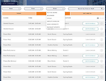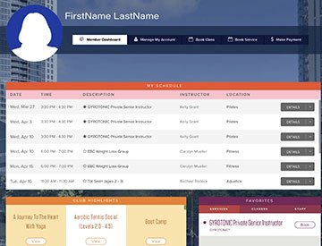 Register for classes and schedule services, training sessions and lessons from each department page, from the online calendar, and from your dashboard.
